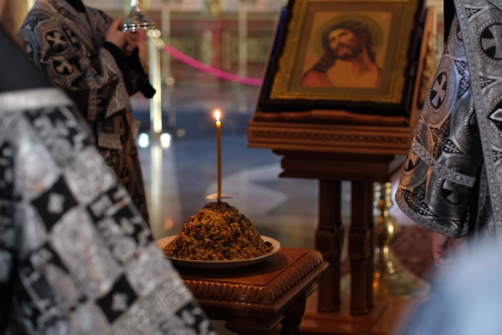 По окончании Литургии архипастырь совершил чин молебного пения с чтением канона святому великомученику Феодору Тирону и освящением колива. За богослужением пел хор Успенского собора.