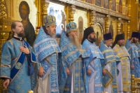 На праздничном аналое накануне вечером была установлена Казанская икона, подаренная Патриархом Московским и Всея Руси Кириллом в день освящения Его Святейшеством Кафедрального Собора 1 июля 2012 года. Южный предел главного епархиального храма освящен в честь Казанской иконы Божией Матери.