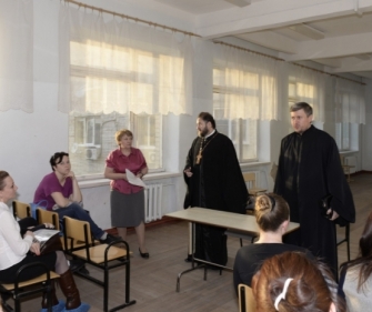 В собрании принял участие помощник благочинного по религиозному образованию и катехизации диакон Алексий Ряжских. По завершении собрания священник провел рабочую встречу с директором школы Людмилой Селезень.