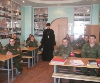 Нравственный подвиг православных воинов-мучеников, азы духовной жизни, смысл ветхозаветных заповедей и заповедей блаженства, значение поста в жизни православного христианина — вот неполный перечень тем, которые священник раскрыл ребятам, проходящим службу в рядах Российской армии.