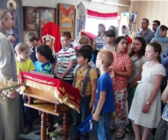 Дети и взрослые пропели молитвенные песнопения перед иконой. После этого воспитанники воскресных школ, их родители и педагоги приняли участие в совместной трапезе в роще неподалёку от храма. Вместе с детьми приехали участники молодежного клуба «Воскресение» Свято-Георгиевского прихода. Песни у костра под гитару, дружеское общение, спортивные игры и веселые конкурсы объединили всех собравшихся.