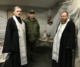 В день празднования Светлого Христова Воскресения штатные клирики Патриаршего Вознесенского войскового всеказачьего собора иерей Андрей Карачун и иерей Игорь Чубченко посетили с пастырскими визитами военнослужащих, длительное время пребывающих на полигонах, расположенных на значительном удалении от мест постоянной дислокации их воинских подразделений.