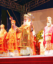 На богослужение съехались паломники со всех концов России, из более 10 стран ближнего и дальнего зарубежья. Впервые в истории рядом с православными молились японские самураи. Это старейшины из земли Сацума, с острова Кюсю. Они бережно хранят память о визите в эти места Николая II в 1891 году.