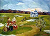 Храм: пейзаж с храмом, богослужение, Пасхальный крестный ход, освящение снеди (храмы изображаются только с крестами!)