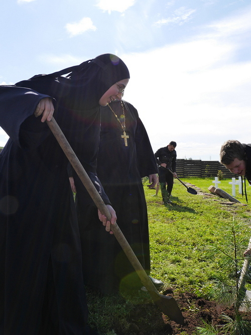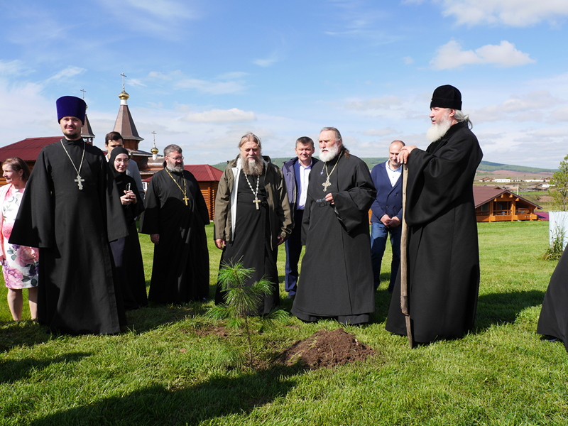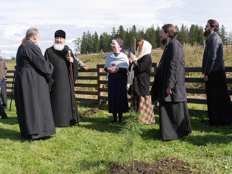 митрополит Максимилиан, гости из Калифорнии, паломники и прихожане, по традиции этого дня, высадили аллею молодых кедров