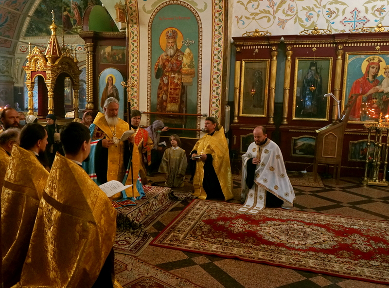 Правящему архиерею сослужили: протоиерей Виктор Хаустов, игумен Феофан (Евтихеев), секретарь Иркутской епархии священник Стефан Бажков, иеромонах Ефрем (Пашков), священник Сергий Новиков, протодиакон Димитрий Бухаров и диакон Петр Новоселов.