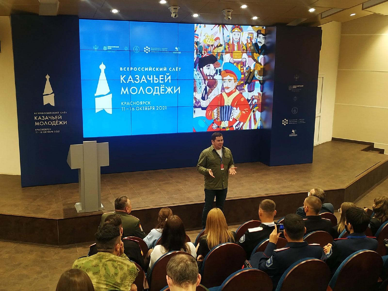 Всероссийский слёт казачьей молодёжи проходит в очном формате в Красноярске с 11 по 16 октября. Организаторы мероприятия — Всероссийское казачье общество, Росмолодежь, Администрация Красноярского края.