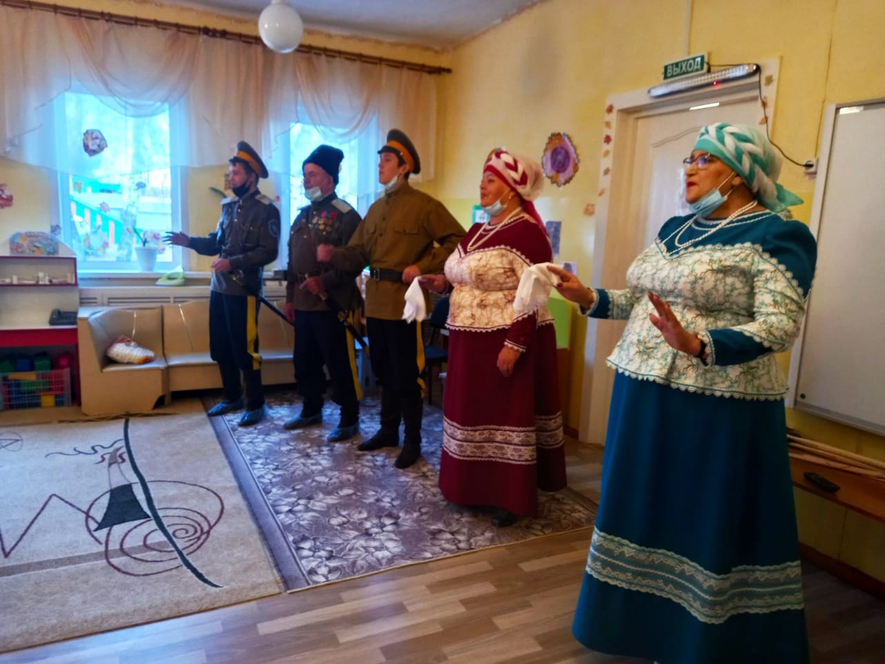На праздник детям старшей и подготовительной групп были приглашены казаки Куйтунского хуторского казачьего общества, народный казачий вокальный ансамбль «Станица».