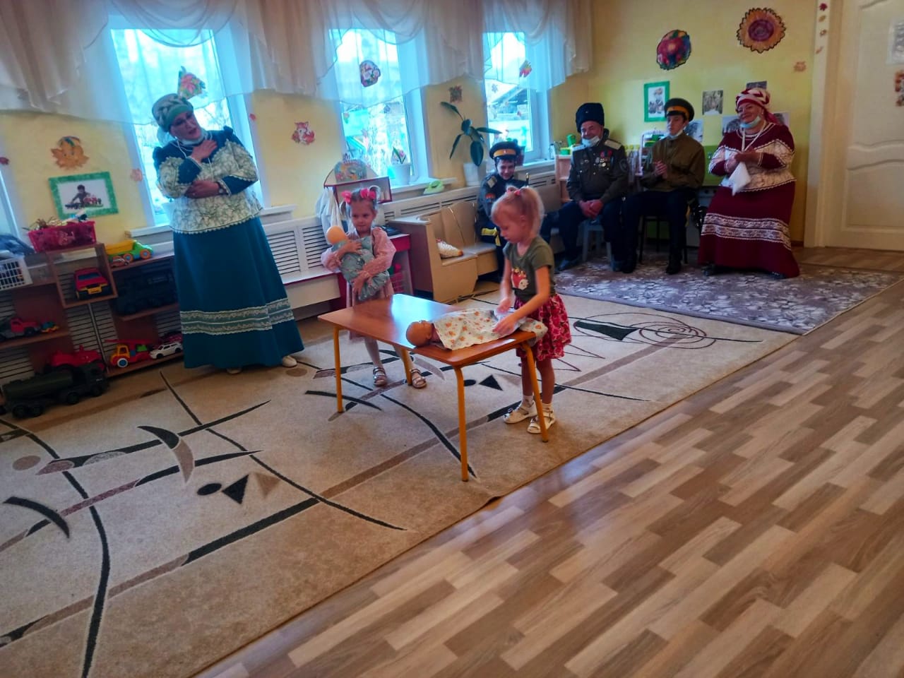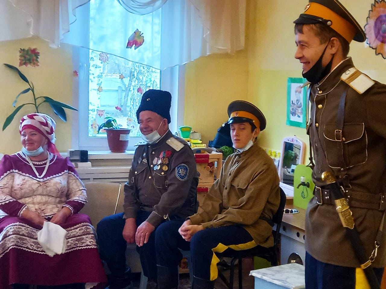 Ведущая мероприятия воспитатель, а также солистка казачьего ансамбля Людмила Ивановна Гудкова, в интересной форме рассказала ребятам о том, кто такие казаки. Также был показан короткометражный фильм о богатой истории и культуре казачьего народа. Затем было предоставлено слово наказному атаману Куйтунского хуторского казачьего общества Игорю Петровичу Калашникову, который рассказал об истории местного казачества. Дети с удовольствием и нескрываемым интересом слушали и общались с будто сошедшими со старых фотографий гостями. А сколько радости было у дошколят, когда они играли в настоящие казачьи забавы.