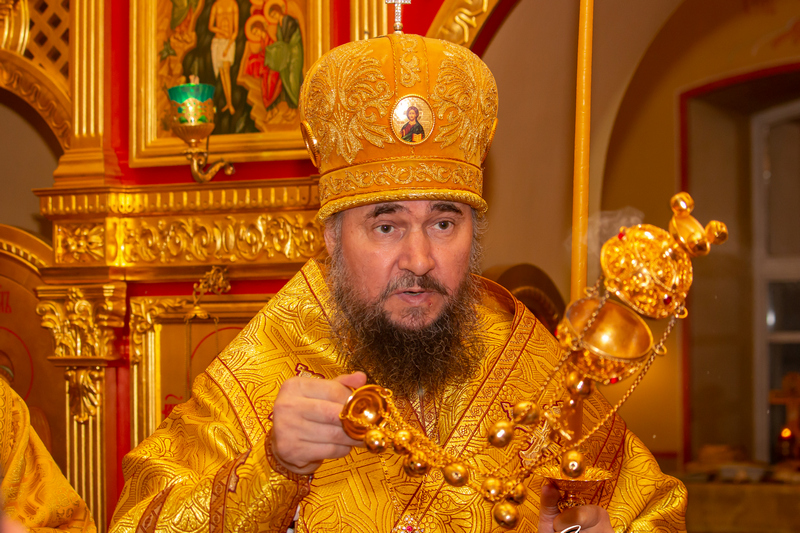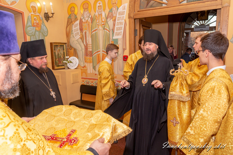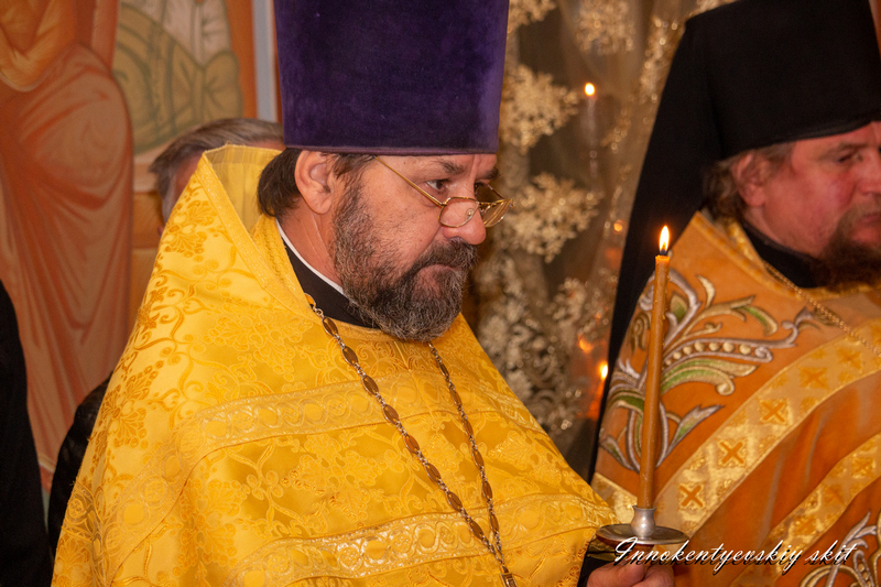 Преосвященнейшему владыке Фотию (Евтихееву) сослужили настоятель храма игумен Феофан (Евтихеев), клирик храма священник Владимир Тарасов, клирик Пермской епархии игумен Софроний (Евтихеев) и протодиакон Иркутской епархии Дмитрий Бухаров.