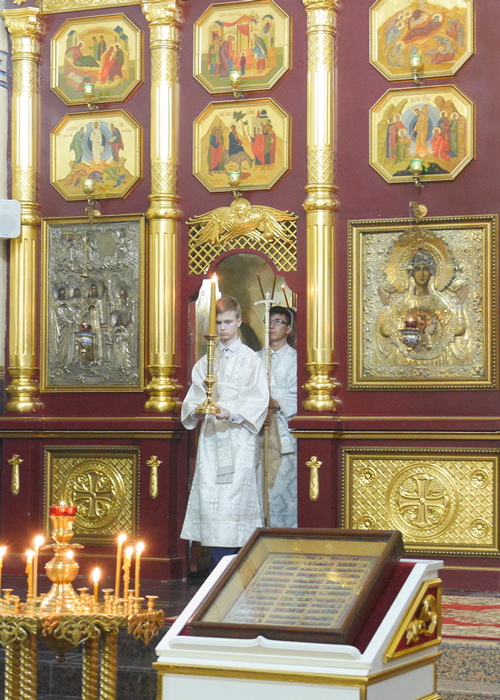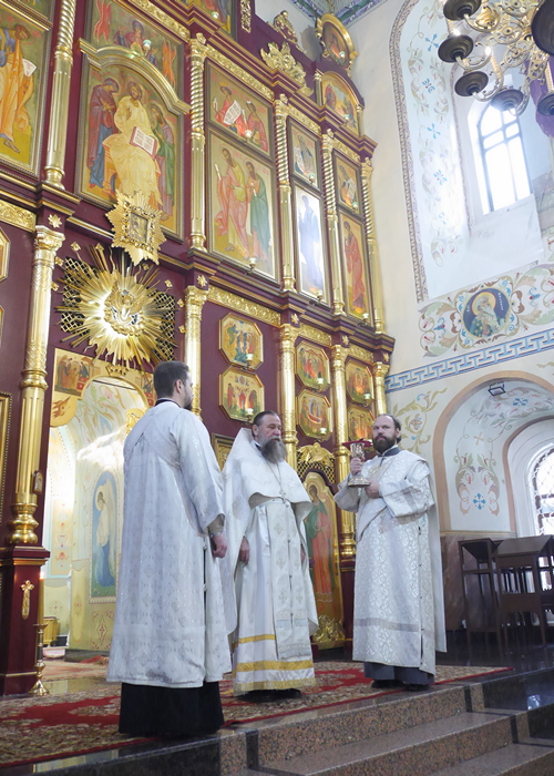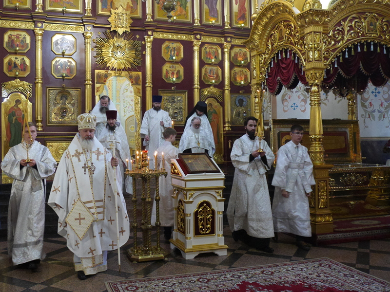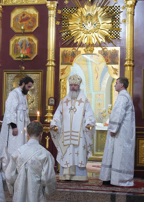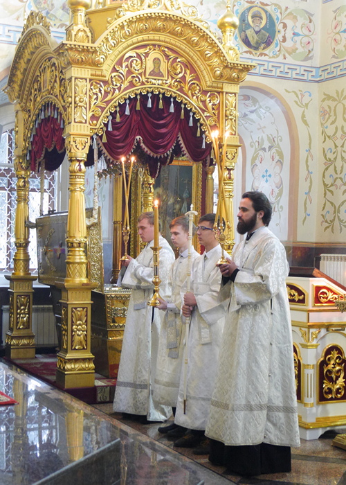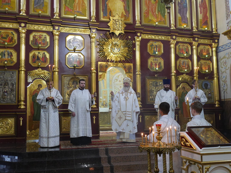 Высокопреосвященнейшему владыке сослужили секретарь Иркутской епархии священник Стефан Бажков, иеромонах Ефрем (Пашков), священник Сергий Калашников, протодиакон Димитрий Бухаров и диакон Прохор Огородников.