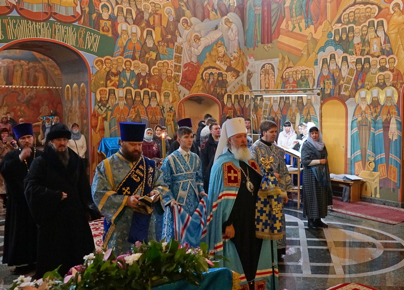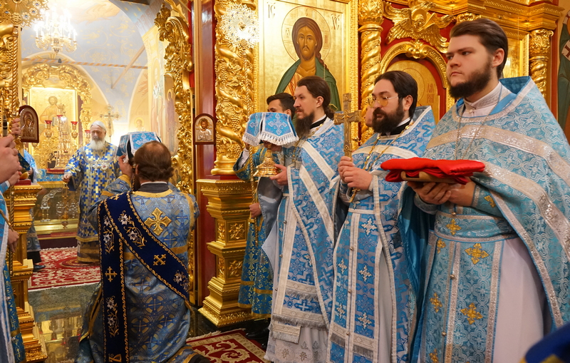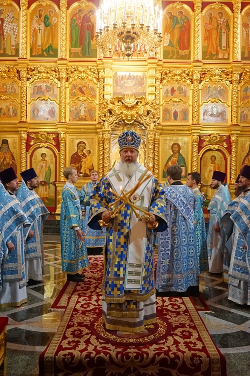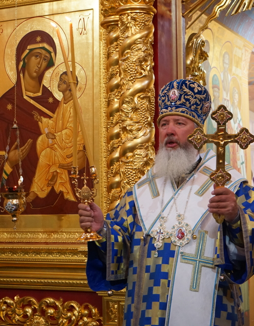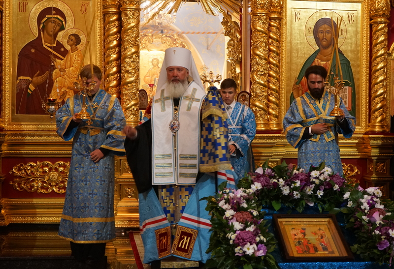 По завершении богослужения было отслужено славословие Празднику, после чего правящий архиерей поздравил собравшихся с Двунадесятым праздником и заострил внимание молящихся на том, что «в нашей жизни мы часто ложно представляем себе, что такое хорошо и что такое плохо», но самая большая радость человека – это общение с Богом, молитва к Нему. Владыка задал вопрос, почему мы не чувствуем этой радости и не стремимся к этому общению – и призвал всех искать, что мешает нам в этом делании, и преодолевать это: «кротко и смиренно преодолевать все случающееся в жизни», «и тогда Господь даст нам все нужное сверх меры». «А гордость этому только мешает» и толкает человека к унынию и потере смысла жизни.
