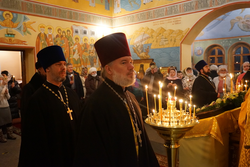 Настоятель храма протоиерей Игорь Толстиков от всего сердца поблагодарил владыку Максимилиана за радость совместной молитвы в престольный праздник, и что это для всех прихожан и духовенства «двойная радость», поздравил его с праздником и с юбилеем епископской хиротонии (18.12.2011 года) и священнической хиротонии (19.12.2004).