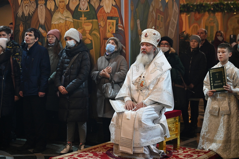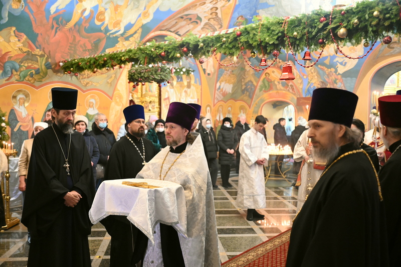 В праздничный вечер Рождества Христова, 7 января 2022 года, в кафедральном соборе Богоявления Господня состоялась особенная служба - Великая вечерня Рождества Христова с приглашением благочинных церковных округов Иркутской епархии