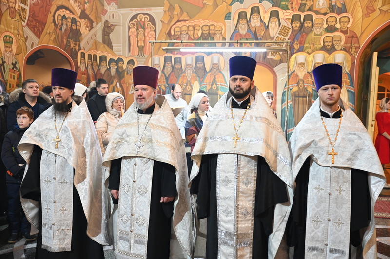 Совершил праздничное богослужение митрополит Иркутский и Ангарский Максимилиан в сослужении клириков Иркутской епархии: протоиерея Каллиника Подлосинского, секретаря Иркутской епархии священника Стефана Бажкова, протоиерея Александра Василенко, протоиерея Евгения Прохорова, протоиерея Алексия Подлосинского, протоиерея Константина Кожуховского, протоиерея Андрея Тарасова, священников Владислава Чапайкина и Виктора Дудкина, протодиакона Димитрия Бухарова и диакона Петра Новоселова.