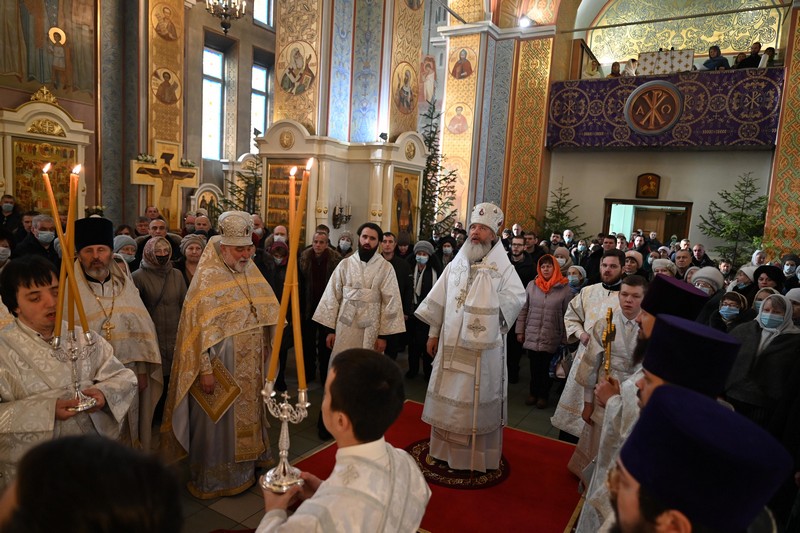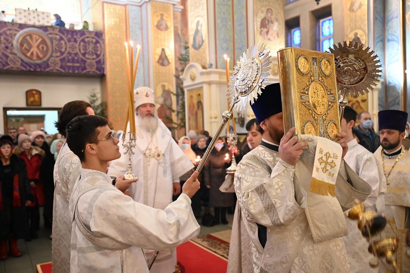 9 января 2022 года, в день памяти святого праведного Иосифа Обручника, Давида царя, Иакова, брата Господня по плоти и архидиакона Стефана, владыка Максимилиан, митрополит Иркутский и Ангарский, возглавил Божественную литургию в Свято-Троицком кафедральном соборе г.Ангарска.