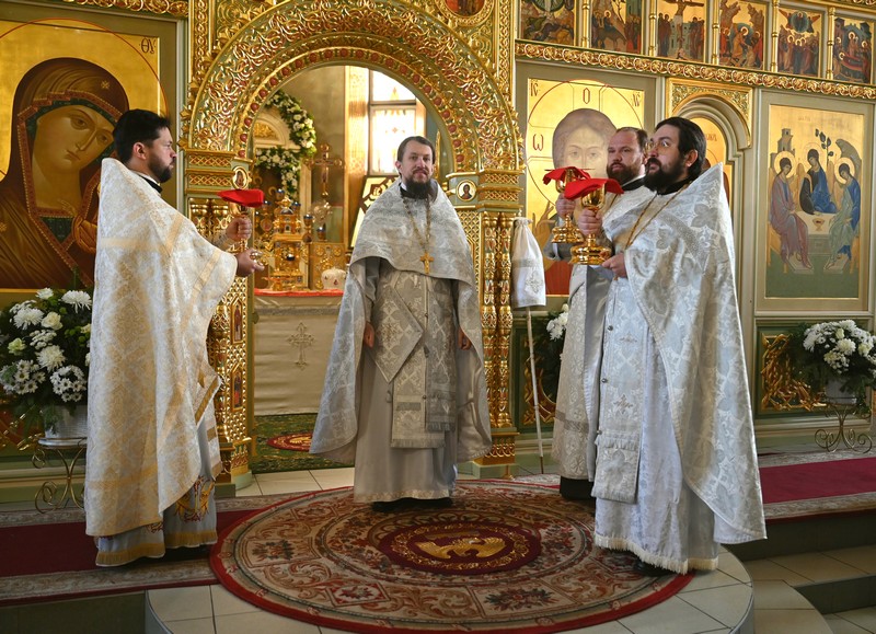 В Ангарске правящему архиерею сослужили настоятель храма протоиерей Владимир Килин, секретарь Иркутской епархии священник Стефан Бажков, протоиерей Сергий Исьянов, протоиерей Владимир Бурдин, протоиерей Алексий Игнатьев, священник Григорий Гудин, протодиакон Димитрий Бухаров и диакон Андрей Лялин.