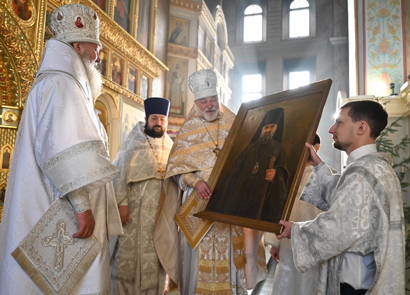 По окончании Божественной литургии настоятель храма протоиерей Владимир поблагодарил митрополита Максимилиана за особую радость архиерейской Литургии и преподнес ему в подарок портрет владыки Вадима, оказавшего большое влияние на его становление.