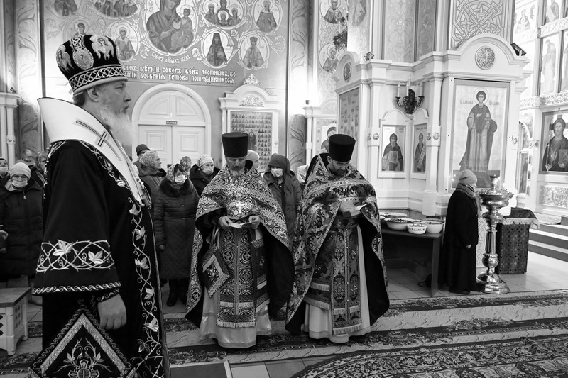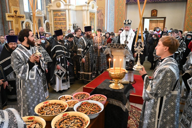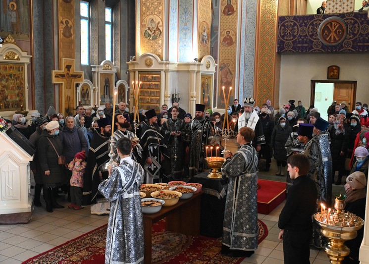 По окончании Литургии был отслужен молебен с каноном великомученику Феодору Тирону и освящено коливо, после чего Владыка обратился к прихожанам с архипастырским словом, в котором напомнил молящимся о событиях чудесного заступничества святого Феодора Тирона и пожелал всем прихожанам провести пост так же благочестиво, как первую седмицу Великого поста: «в бодром духовном состоянии, в покаянии, в желании угождать Богу и изменять себя по Образу и подобию Божию».