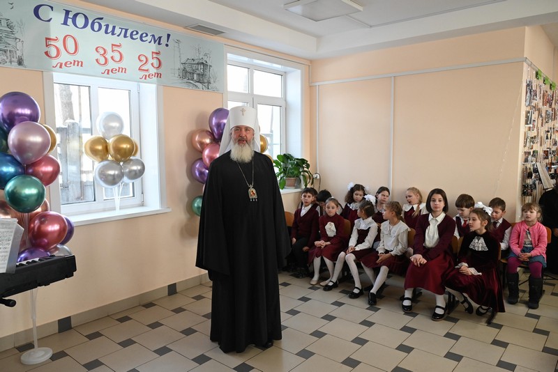 Митрополит Иркутский Максимилиан напомнил собравшимся, что настоятель храма протоиерей Каллиник Подлосинский в этом году также дважды юбиляр (он отмечает 50-летие священнического служения и 35-летие служения в Михаило-Архангельском храме г.Иркутска), и школа рождалась, развивалась и крепла при его непосредственном молитвенном окормлении и попечении. «Школа была плодом его желания послужить Церкви, послужить народу нашему и нашим детям. Ведь дети – это наше будущее, и если с детства не вкладывать в их души, сердца и умы Истину, они неизбежно наполнятся чем-то другим – и, чаще всего, далеким от спасения», - отметил владыка.