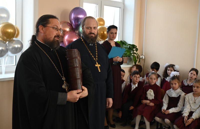 Протоиерей Каллиник также поделился воспоминаниями о рождении школы, о мечтах и задачах работы, связанных с ее открытием, подчеркнув, что «не зря прошли эти 25 лет». Что даже исторически первая школа и первая библиотека были открыты святителем Иннокентием Иркутским в Знаменском монастыре – значит, именно в церковной среде зарождалось исторически наше образование.