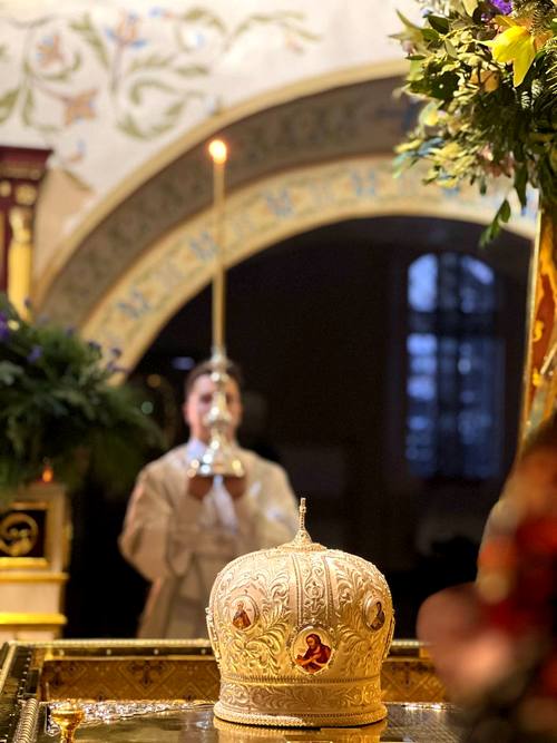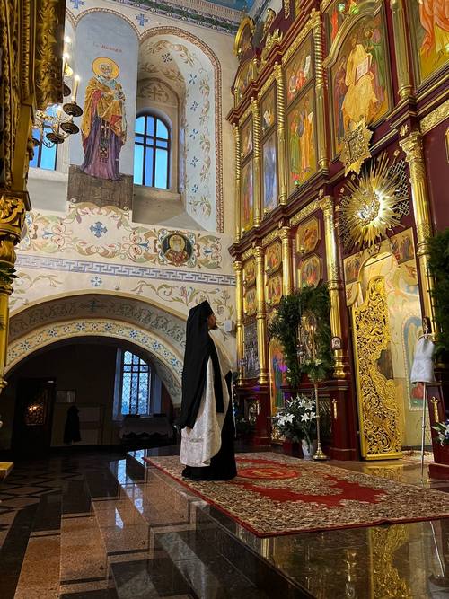 Богослужение сопровождало пение женского клироса Знаменского собора под управлением регента Екатерины Телегиной.
