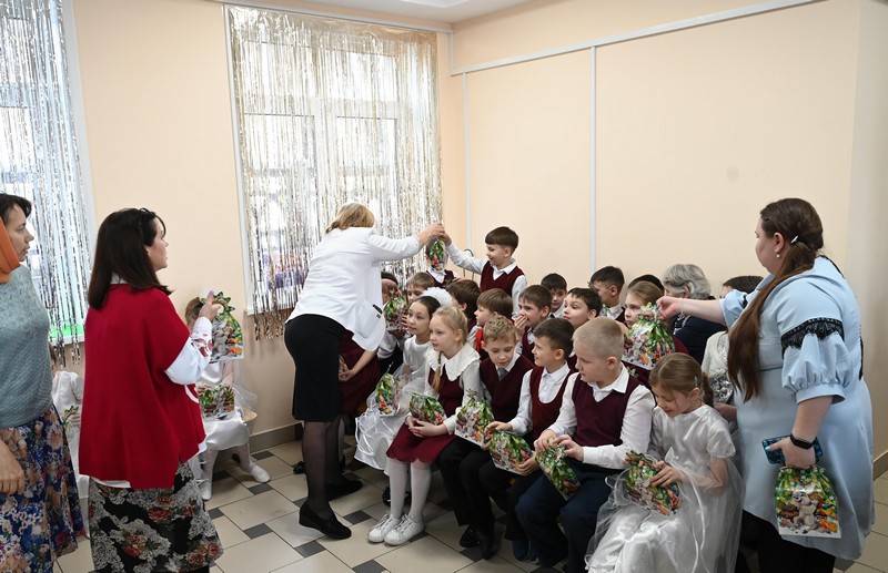 Начальник Управления по работе с населением Ленинского округа Ольга Геннадьевна Бархоткина привезла для детей сладкие Рождественские подарки, которые Администрация округа дарит им каждый год.