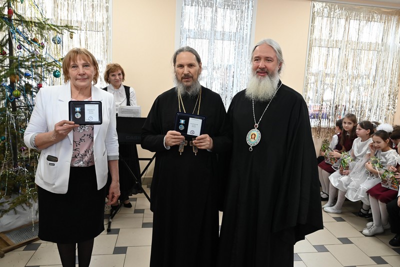 Кроме того, настоятелю храма протоиерею Каллинику Подлосинскому и директору ЦПШ Пеньковской Екатерине Зиновьевне на концерте были вручены за огромную социально значимую деятельность знаки общественного поощрения «85 лет образования Иркутской области», выпущенные по Указу губернатора.