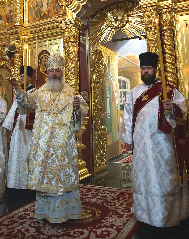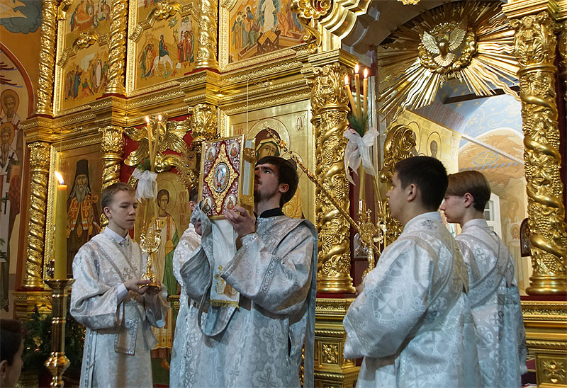 Владыке Максимилиану сослужили: ключарь собора протоиерей Василий Комарницкий, священик Вячеслав Голиков, секретарь епархии священник Стефан бажков, священник Владислав Чапайкин, протодиаконы Димитрий Бухаров и Антоний Смолин, диакон Димитрий Пономарёв.