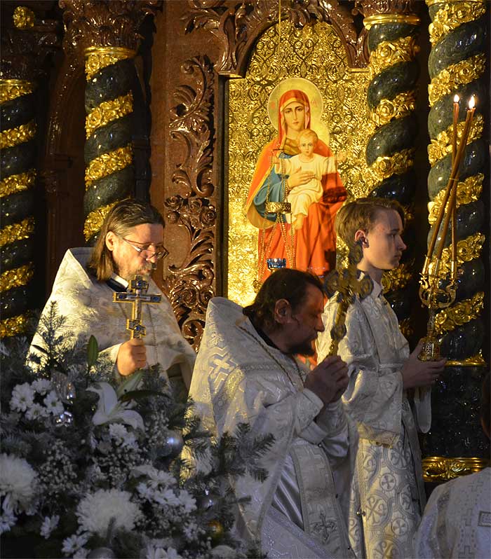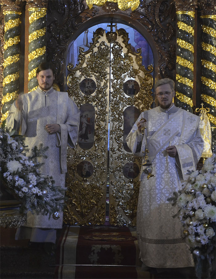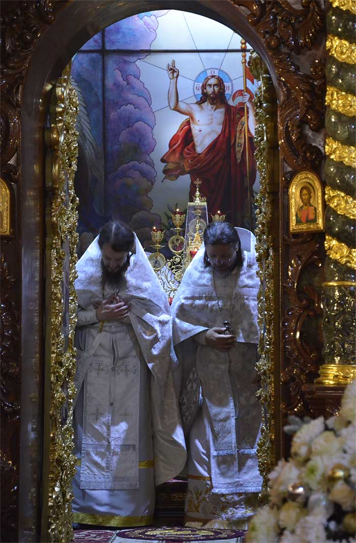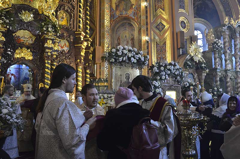 За Литургией Его Высокопреосвященству сослужили: протоиерей Сергий Кузнецов, игумен Феофан (Евтихеев), настоятель храма протоиерей Сергий Кульпинов, секретарь епархии священник Стефан Бажков, священники Димитрий Старцев и Павел Старцев, протодиаконы Димитрий Бухаров и Антоний Смолин, диаконы Димитрий Пономарёв и Сергий Кульпинов.