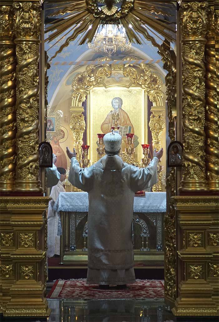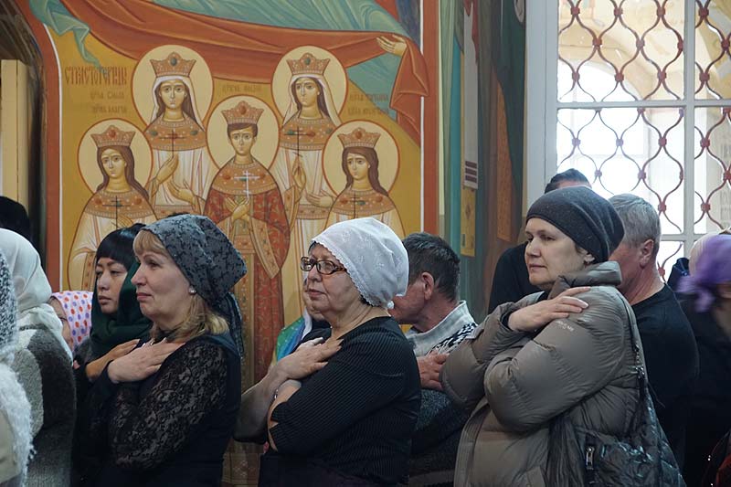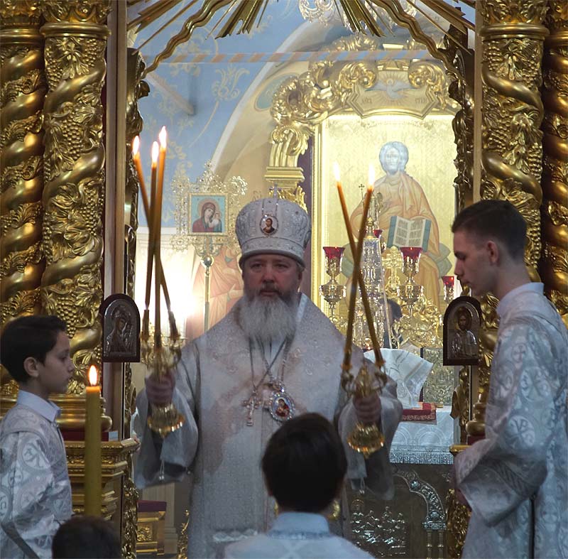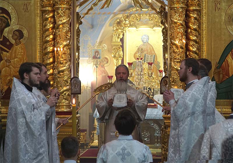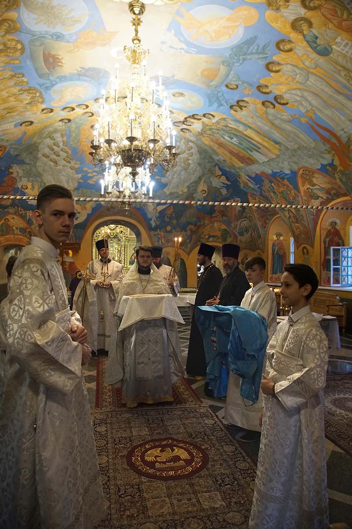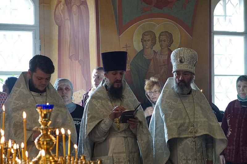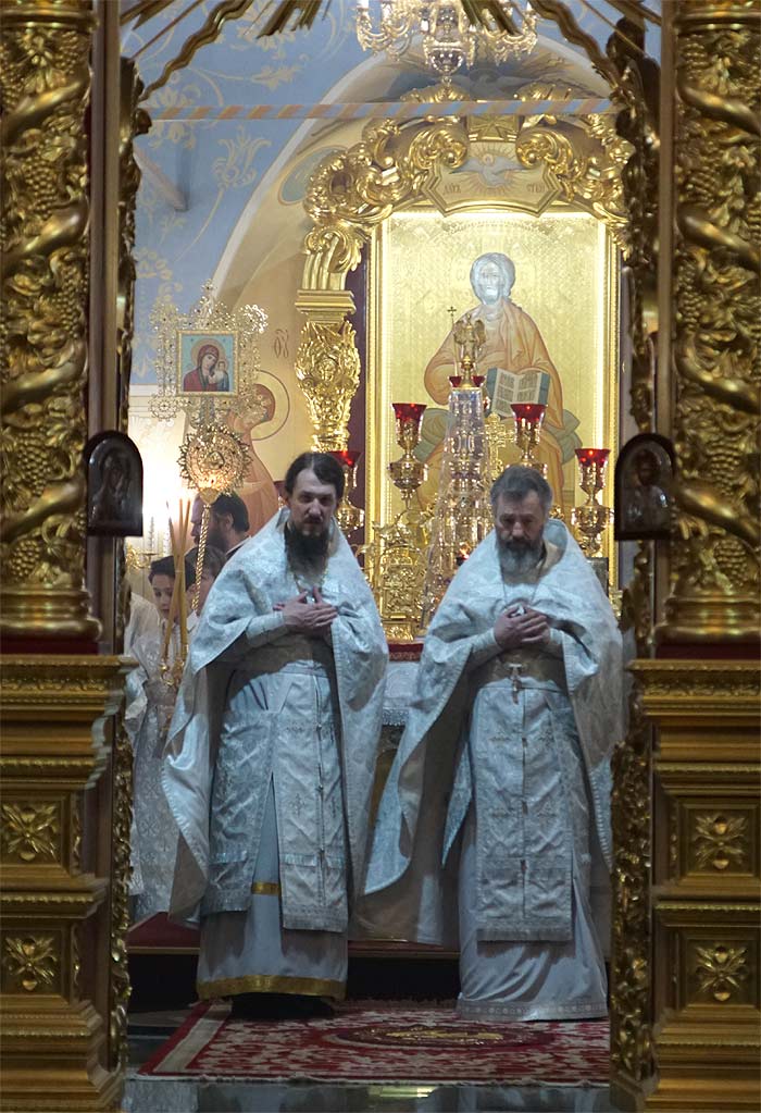 За Литургией Его Высокопреосвященству сослужили: ключарь собора протоиерей Василий Комарницкий, секретарь епархии священник Стефан Бажков, священник Владислав Чапайкин, священник Илия Чапайкин, протодиаконы Димитрий Бухаров и Антоний Смолин.