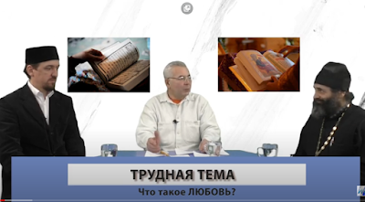 В студии Ивановского Общественного телевидения кандидат философских наук Владимир Кашаев беседует с руководителем отдела по взаимоотношениям церкви с обществом и СМИ Иваново-Вознесенской епархии иеромонахом Макарием (Маркишем) и имам-хатыбом соборной мечети г. Иваново Халидом Якуповым.