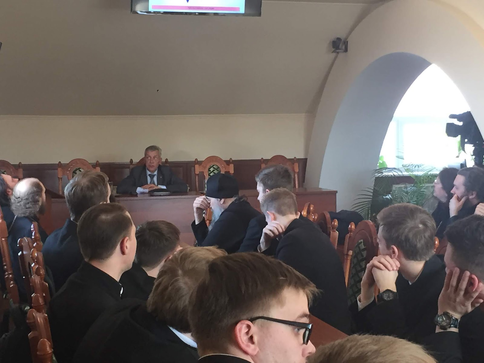 17 апреля в зале заседаний Ученого совета Свято-Алексеевской Иваново-Вознесенской православной духовной семинарии состоялась открытая лекция заслуженного спасателя России Андрея Донатовича Легошина «Пастырское служение в условиях чрезвычайной ситуации». В мероприятии приняли участие студенты семинарии и священнослужители Ивановской митрополии, проходящие обучение по программе первоначальной подготовки спасателей на базе Ивановской пожарно-спасательной академии ГПС МЧС России. В ходе лекции Андрей Донатович ознакомил обучающихся с основными нормативно-правовыми принципами организации мероприятий по предупреждению и ликвидации чрезвычайных ситуаций. Особое внимание было уделено вопросам, связанным с оказанием пастырской помощи пострадавшим.