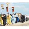 Перед центральными вратами было прочитано Святое Евангелие и под колокольный перезвон Чудотворный образ Царицы Небесной в сопровождении ковчега с частицей мощей Крестителя Руси вступили на земли некогда богатейшего села Мещовского района.