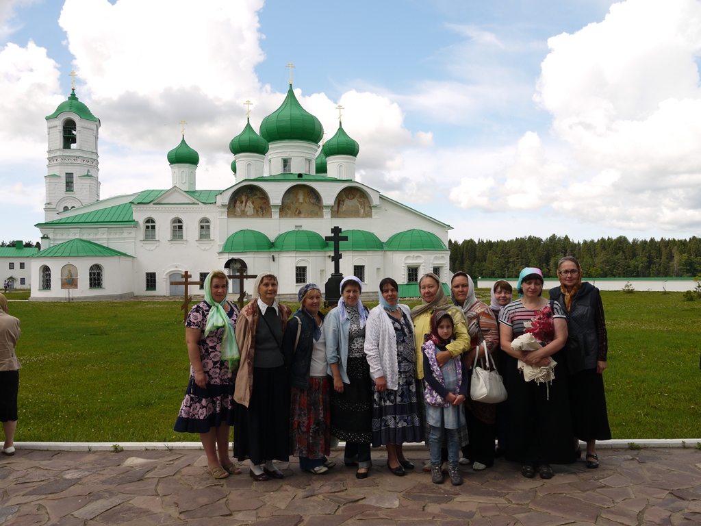Возвращаясь назад в Калугу, калужская делегация остановилась в Введено-Оятском женском монастыре, где в храме в честь Преображения Господня находятся мощи родителей преподобного Александра Свирского - схимонаха Сергия и схимонахини Варвары. Перед обратной дорогой все паломники искупались в святом целебном источнике.