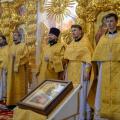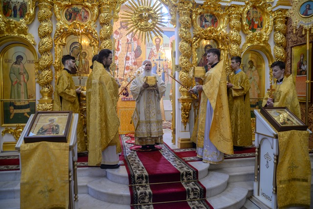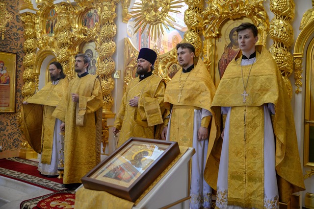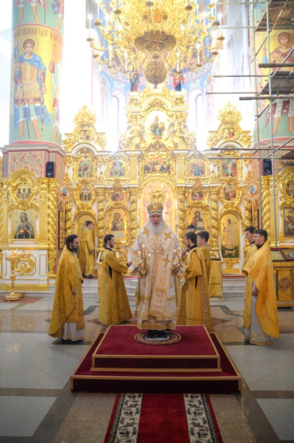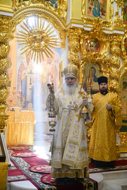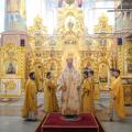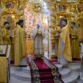 Его Высокопреосвященству сослужили иерей Александр Земцов - благочинный округа, иеромонах Иоанн (Король), иерей Филипп Лисенков, протдиакон Сергий Комаров, диакон Тимофей Карпенко.