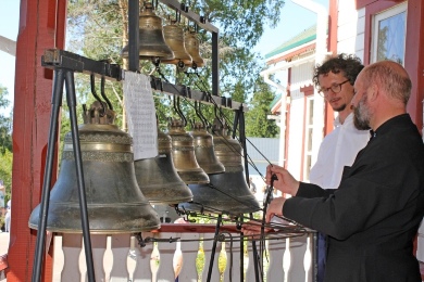 По окончании желающие пробовали себя в роли звонарей на малой звоннице.