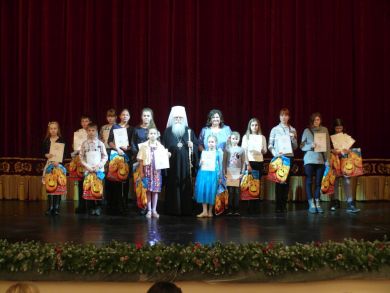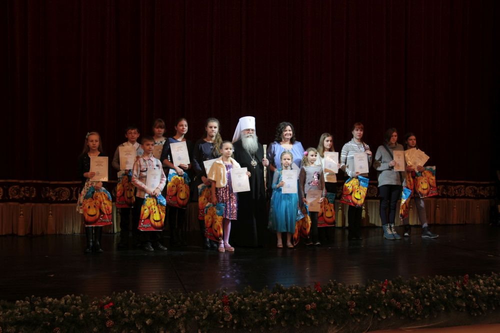 Затем митрополит Константин поздравил победителей Х-го конкурса детского рисунка «Рождественские чудеса» и вручил им памятные грамоты и подарки.