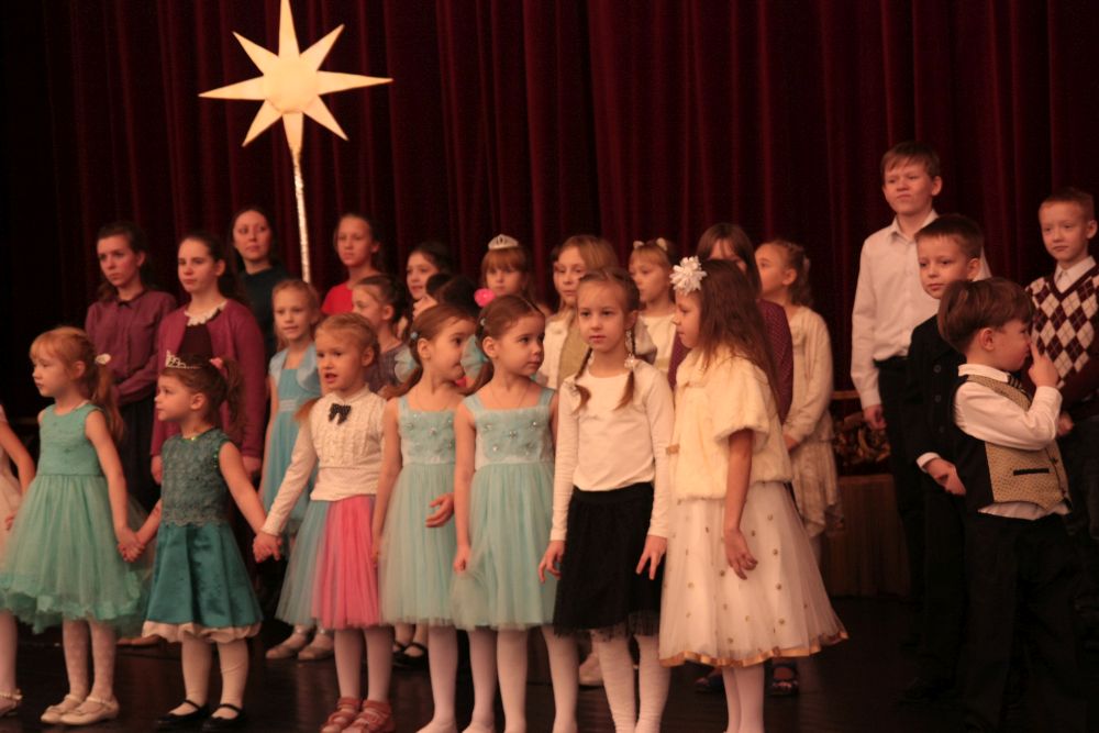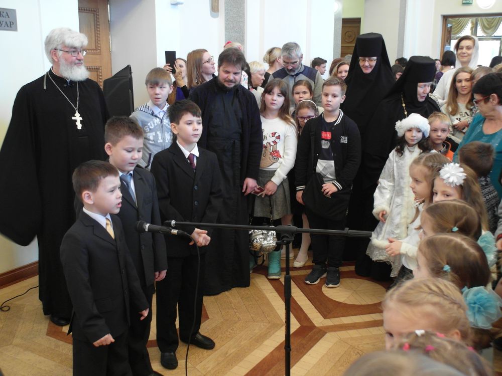 Перед началом праздника в Зеркальном зале театра выступили коллективы Детских воскресных школ храмов (Духовно-просветительский центр во имя Александра Свирского, ДВШ Александро-Невского собора, ДВШ Пантелеимоновского храма, ДВШ Кондопожского прихода) епархии с Рождественскими номерами. Дети пели Рождественские колядки и читали Рождественские стихотворения.