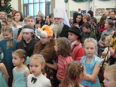 C поздравительным словом к собравшимся обратился митрополит Петрозаводский и Карельский Константин. Владыка рассказал, что это уже вторая елка. На певрой елке было около 450-ти детей, а сейчас 600. Рожественская радость переполняет сердце, а любовь не остается замкнутой, свойство любви – изливаться на других – отметил Архиерей. Митрополит Константин особо отметил, что Рождество Христово - это праздник детей.