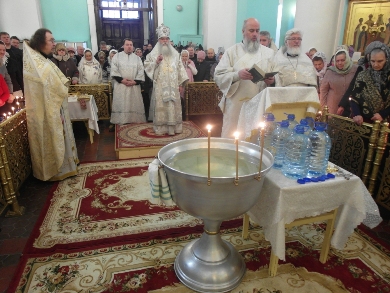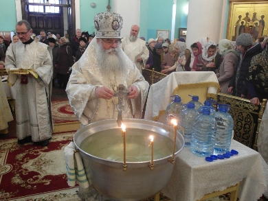 По заамвонной молитве митрополит Константин совершил чин великого освящения воды.