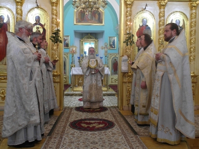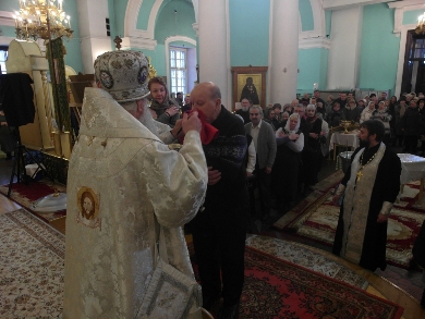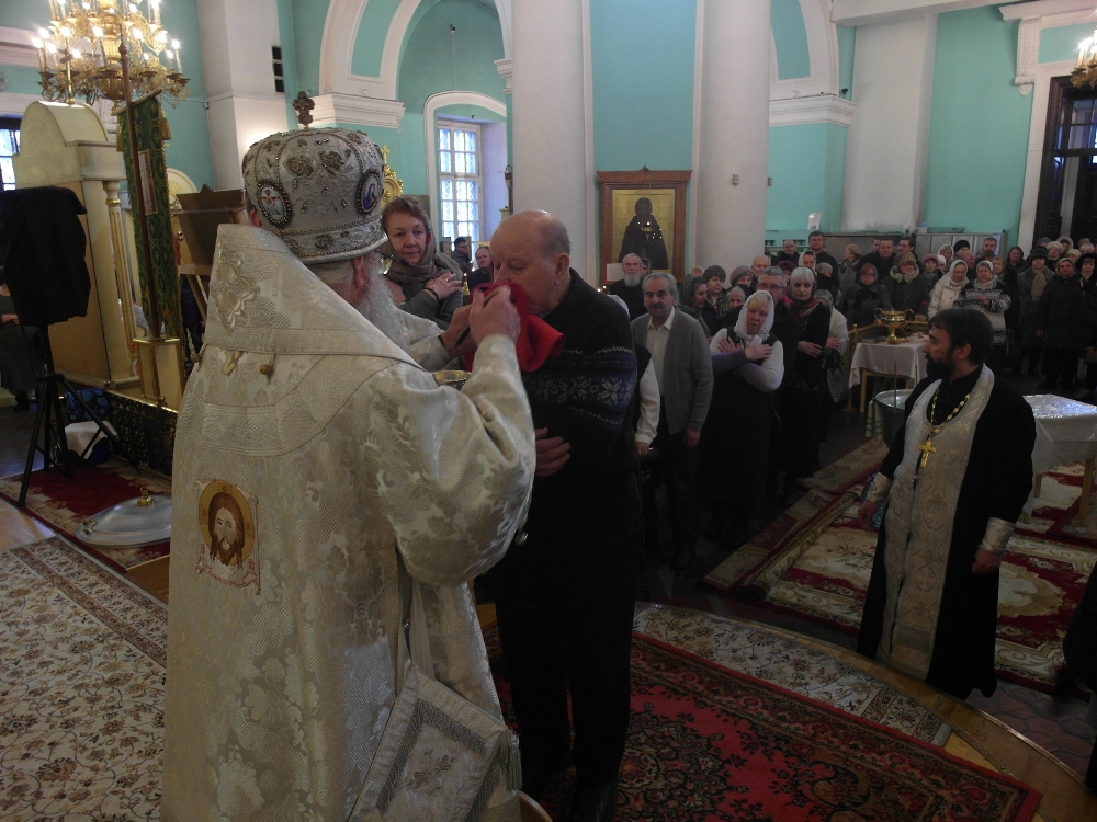 Согласно уставу в этот день совершались Царские часы, изобразительны и вечерня в соединении с Божественной литургией святителя Василия Великого. Его Высокопреосвященству сослужили: штатные клирики кафедрального собора.