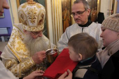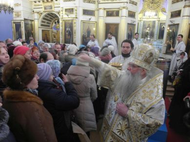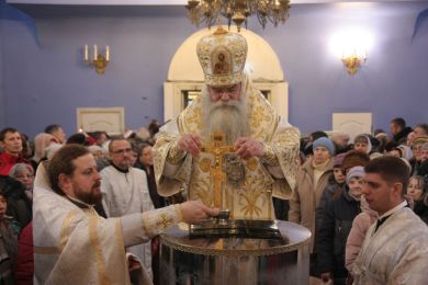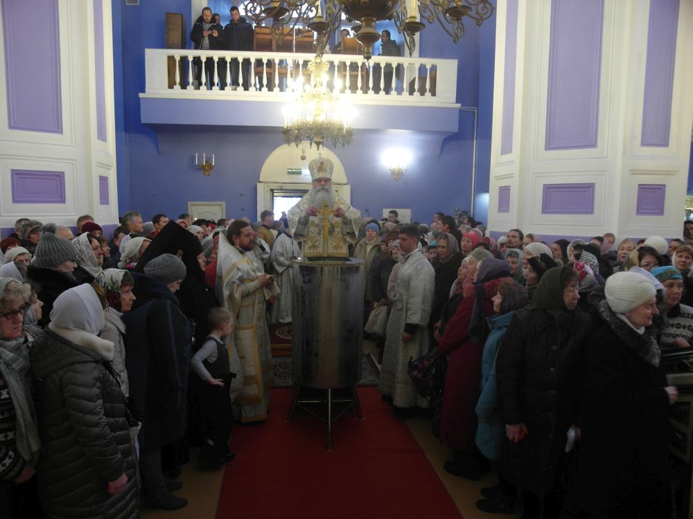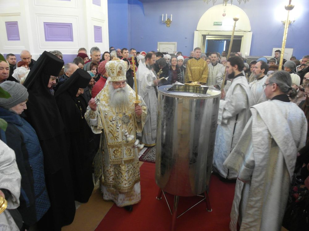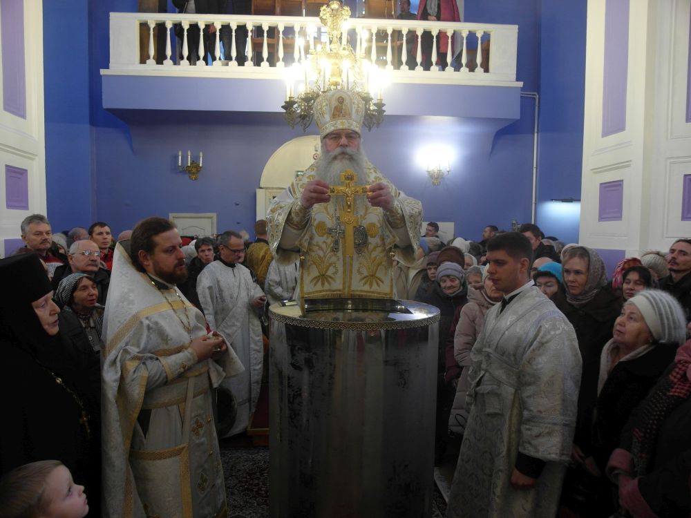 Петрозаводск. 19 января 2019 года, в праздник Крещения Господня, митрополит Петрозаводский и Карельский Константин совершил Божественную литургию и чин великого освящения воды в Крестовоздвиженском соборе.