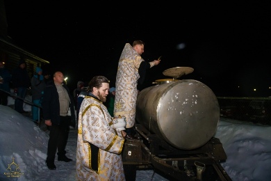 По завершении богослужения настоятель храма протоиерей Роман Соболев освятил воду в храме и в купели расположенной у храма, поздравил присутствующих с торжеством, призвал с верою и благоговением употреблять святую воду, благословил молящихся и окропил их святой водой.