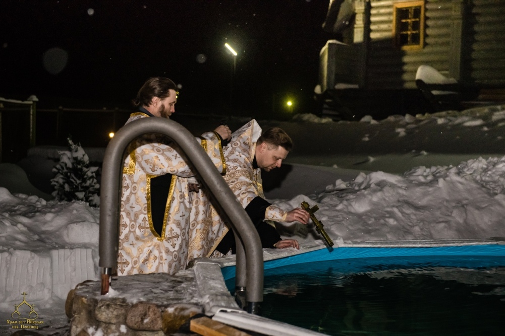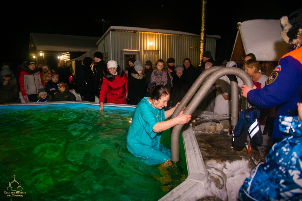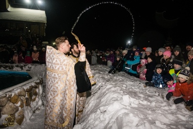Дополнительную торжественность мероприятию придал традиционный фейерверк, озаривший ночное зимнее небо разноцветными огнями. Для желающих искупаться в здании приходского дома была оборудована комфортабельная раздевалка. Люди могли спокойно раздеться и одеться в светлом, теплом помещении. Купались взрослые и дети. Некоторые семьями.