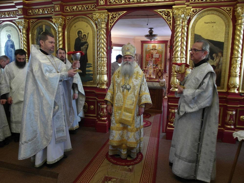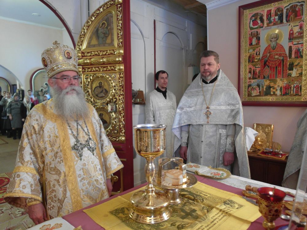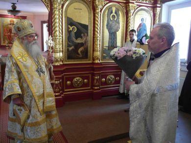 Его Высокопреосвященству сослужили: настоятель храма протоиерей Андрей Верещагин с клириками храма, секретарь Главы Карельской митрополии иерей Константин Павлюченко, протоиерей Александр Паюл и протодиакон Владимир Морозов.