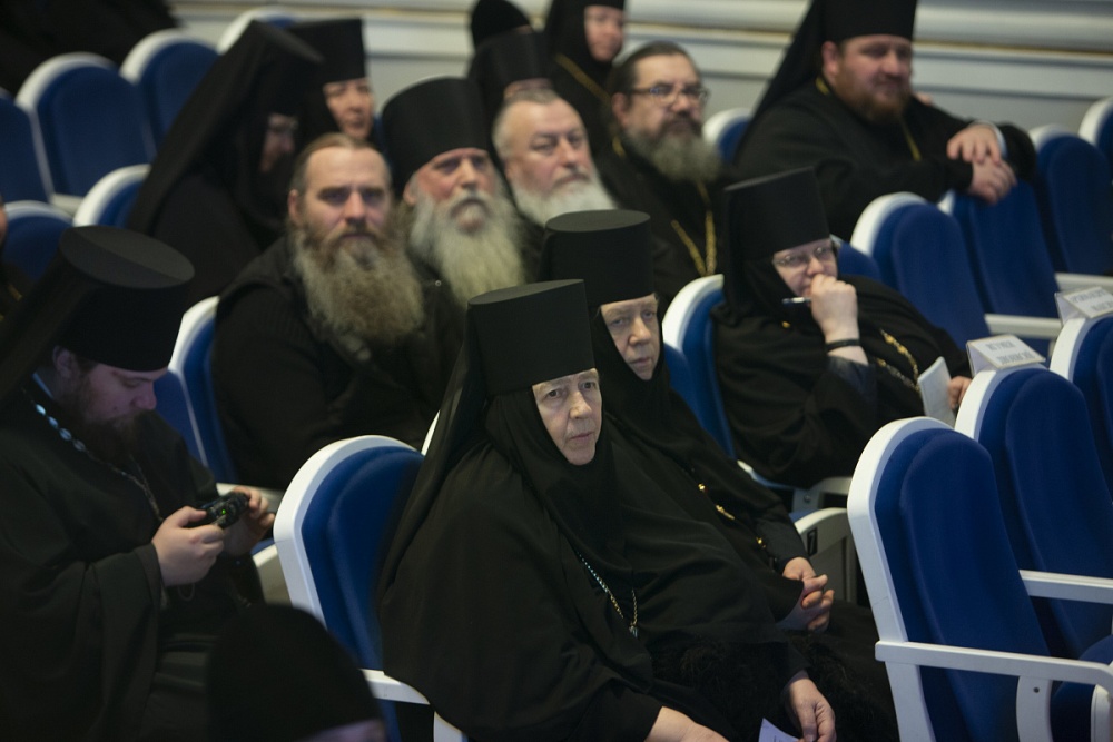 Открывая заседание, митрополит Нижегородский и Арзамасский Георгий напомнил собравшимся игуменам и игумениям, что возрождение монашеской жизни во многом зависит от руководителей монастырей. Ради укрепления духа монашествующих очень важно внимательно относиться к приходящим из мира людям, их мотивации остаться в обители, намерению вести аскетическую жизнь в братстве или сестричестве. Далее с докладом «Содержание монашеских обетов в отношении понятий "свобода и ответственность"» выступил митрополит Смоленский и Дорогобужский Исидор. Игумен Иосиф (Крюков), начальник Московского подворья Спасо-Преображенского Валаамского ставропигиального мужского монастыря, представил слушателям выступление «“Мне мир распялся и аз миру”: от чего отрекается молодой послушник и что приобретает». В докладе «“Всё мне позволительно, но не всё полезно”: свобода выбора для молодых послушников» епископ Домодедовский Иоанн, наместник Новоспасского ставропигиального мужского монастыря, напомнил, что послушание является одной из важнейших задач молодых послушников, решение которой требует смирения и усердия, ведь результат должен быть достоин того, чтобы представить свой труд Богу. Затем митрополит Нижегородский и Арзамасский Георгий представил вниманию собравшихся документ «Духовное руководство монашествующими в монастырях», подготовленный Комиссией Межсоборного присутствия по вопросам организации жизни монастырей и монашествующих.
