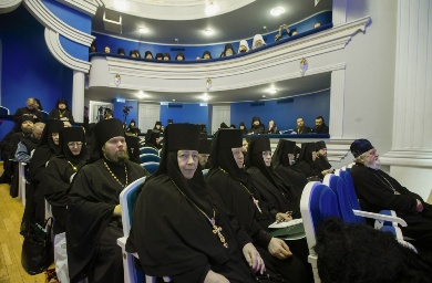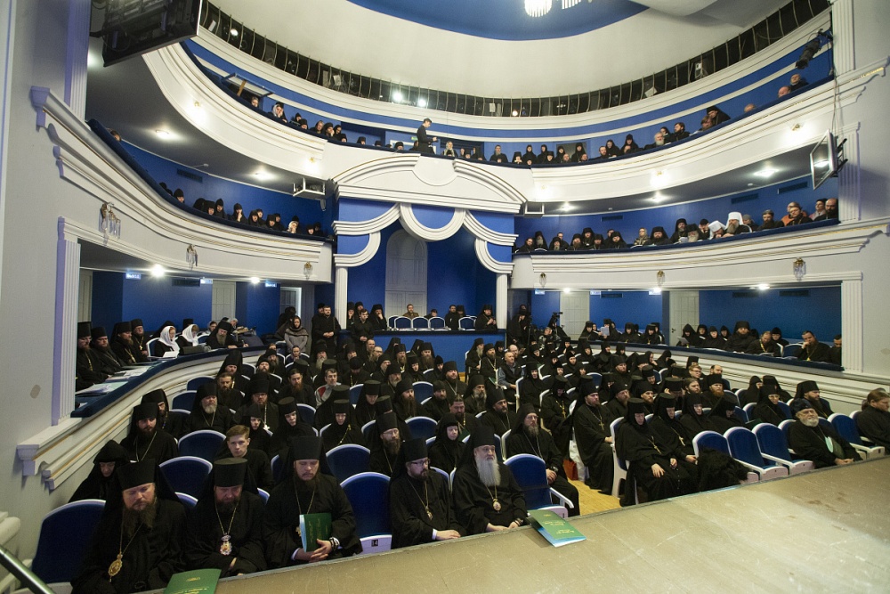 Открывая заседание, архиепископ Феогност передал собравшимся благословение Святейшего Патриарха Московского и всея Руси Кирилла и предоставил слово митрополиту Нижегородскому и Арзамасскому Георгию. Доклад владыки Георгия носил название «Монашество как призвание: от истоков до современности». Архиепископ Пятигорский и Черкесский Феофилакт выступил с докладом «Свобода личности и ответственность в контексте христианского мировоззрения». Доклад «Современные молодые люди и монашеская жизнь: вопросы соотношения ожидаемого и действительного» митрополита Святогорского Арсения, наместника Свято-Успенской Святогорской лавры, также был посвящен преодолению молодым послушником трудностей, возникающих в первые годы монашеской жизни. Митрополит Саранский и Мордовский Зиновий представил аудитории доклад «Исполнение заповедей Христовых как главное содержание монашеской жизни (антропологический аспект)». Митрополит Горийский и Атенский Андрей (Грузинская Православная Церковь) в сообщении «Внешние и внутренние трудности молодых послушников» поделился своими размышлениями о том, насколько важно для монашествующих – как для игуменов, так и для послушников – иметь старцев и духовных друзей, у которых можно было бы получить совет.