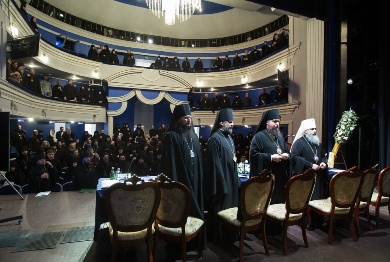Первый день работы XIV направления «Древние монашеские традиции в условиях современности» начался с пленарного заседания. В президиуме присутствовали: архиепископ Сергиево-Посадский Феогност, председатель СОММ, наместник Свято-Троицкой Сергиевой лавры; митрополит Нижегородский и Арзамасский Георгий, председатель Комиссии Межсоборного присутствия по организации жизни монастырей и монашества; митрополит Саранский и Мордовский Зиновий; митрополит Святогорский Арсений, наместник Успенской Святогорской лавры; митрополит Горийский и Атенский Андрей (Грузинская Православная Церковь); архиепископ Пятигорский и Черкесский Феофилакт; игумения Иулиания (Каледа), куратор направления, заместитель председателя Синодального отдела по монастырям и монашеству, настоятельница Зачатьевского ставропигиального женского монастыря Москвы.