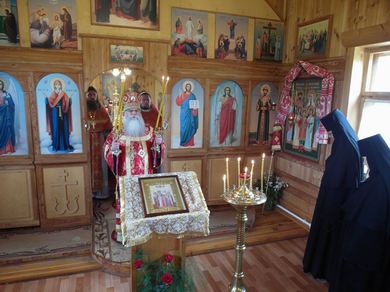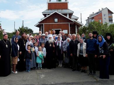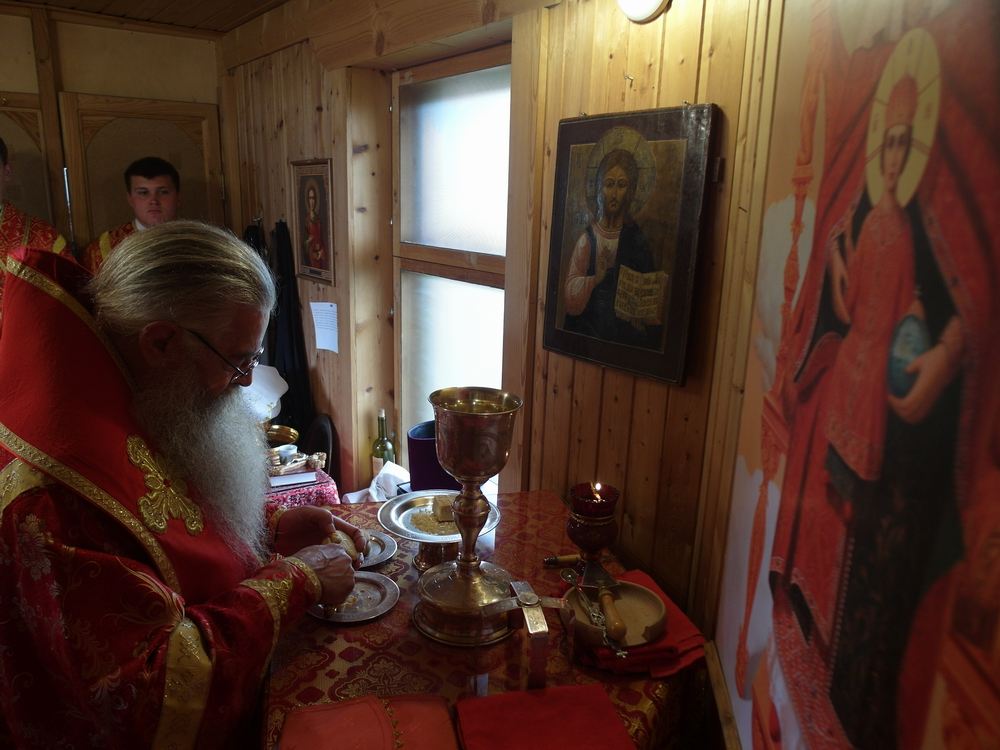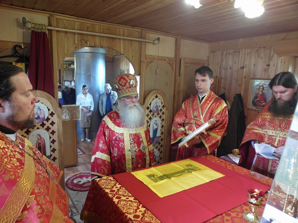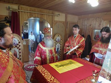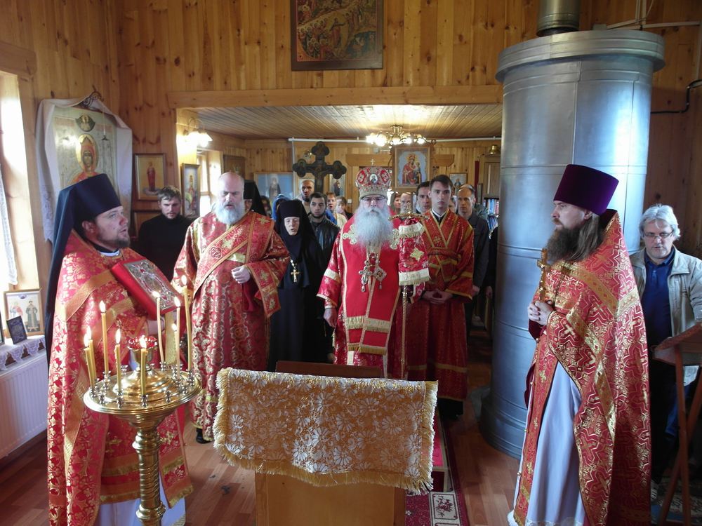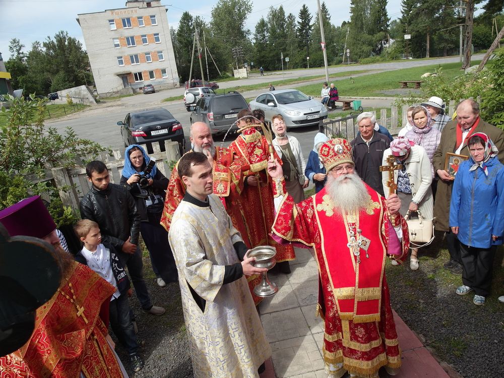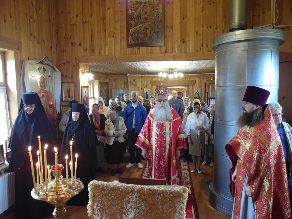 Его Высокопреосвященству сослужили настоятель Прихода иерей Станислав Распутин и клирик Крестовоздвиженского собора г. Петрозаводска иеромонах Аркадий (Лозовский) и протодиакон Алексий Киселев.